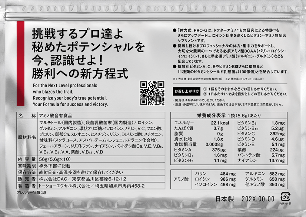 • "PHYSICAL POWER" is a vitamin / amino acid supplement based on the patent * 2 researched by Dr. Amino * 1 and others, and has been further updated to increase the leucine ratio.
