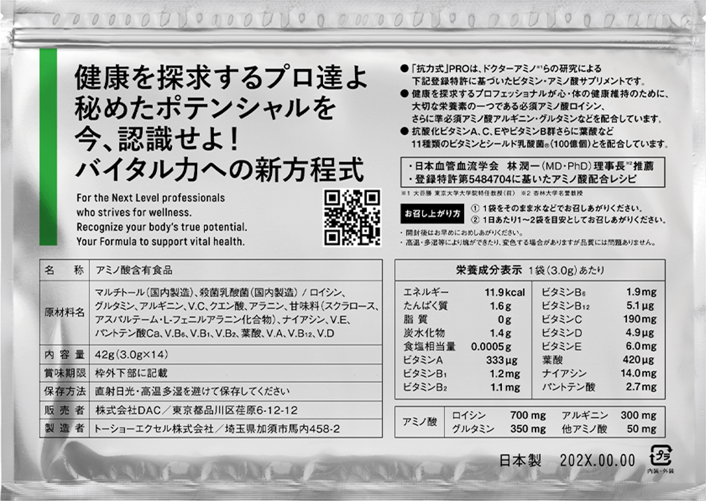 • "VITAL POWER" PRO is a vitamin / amino acid supplement based on the following registered patents researched by Dr. Amino * 1 and others.